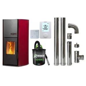 Pachet termosemineu cu peleti KOPH PM 18 kW, 120 mp, buncar 15 kg, diametru cos fum ⌀80 mm, pompa recirculare si vas expansiune incorporate, Bordo